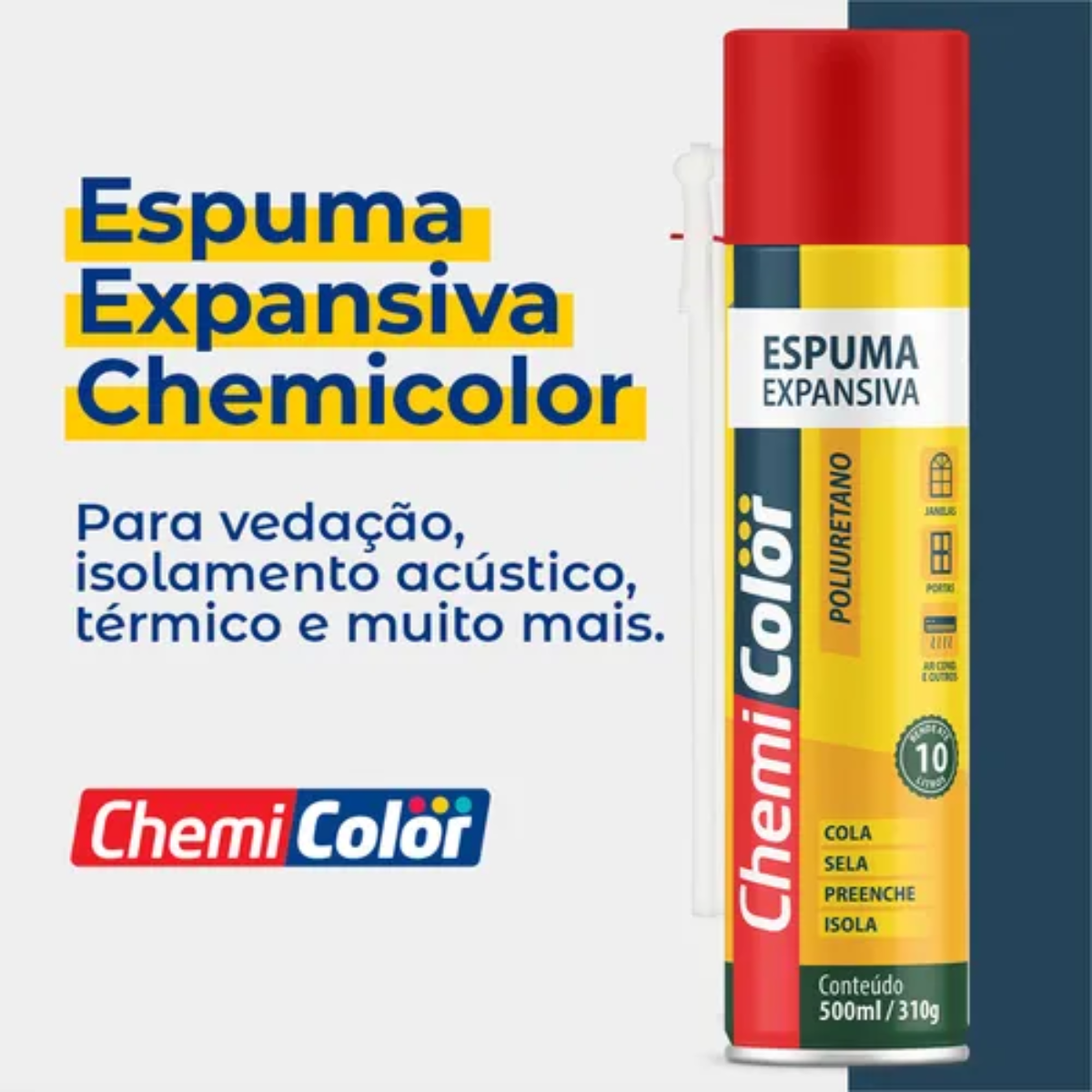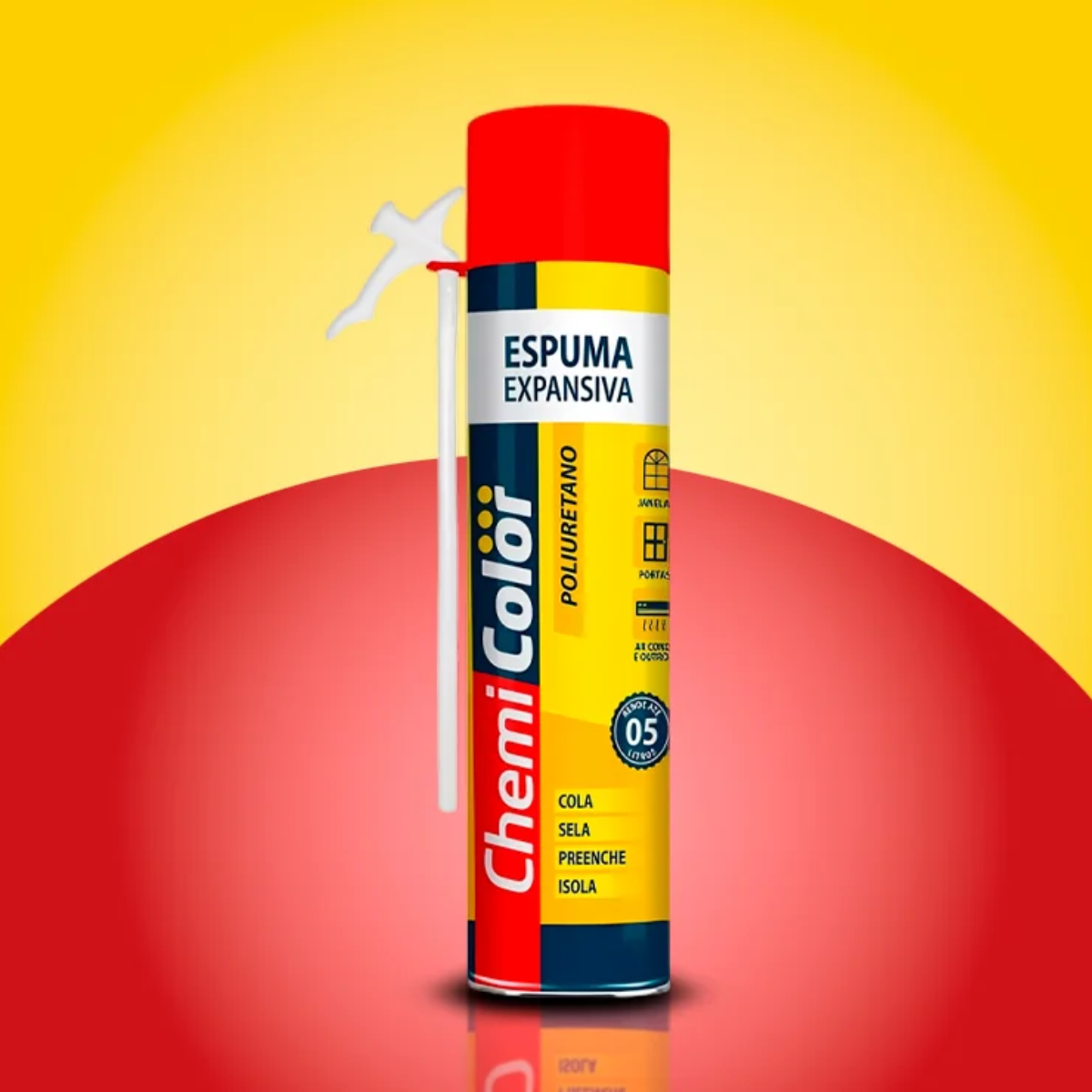 A Espuma Expansiva PU Chemicolor é a solução ideal para quem busca vedação, fixação e isolamento eficiente com alto rendimento e acabamento profissional.